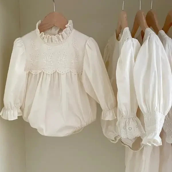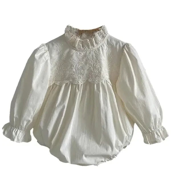Entzückender Bloomer aus Bio-Baumwolle mit süßen Spitzen Kragen.