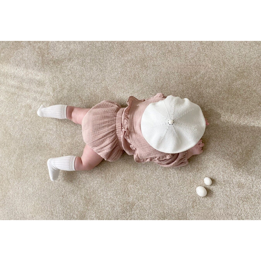 Entzückender Zweiteiler aus Bio-Baumwolle, langarm Oberteil mit süßen Kragen und kurze Hose.