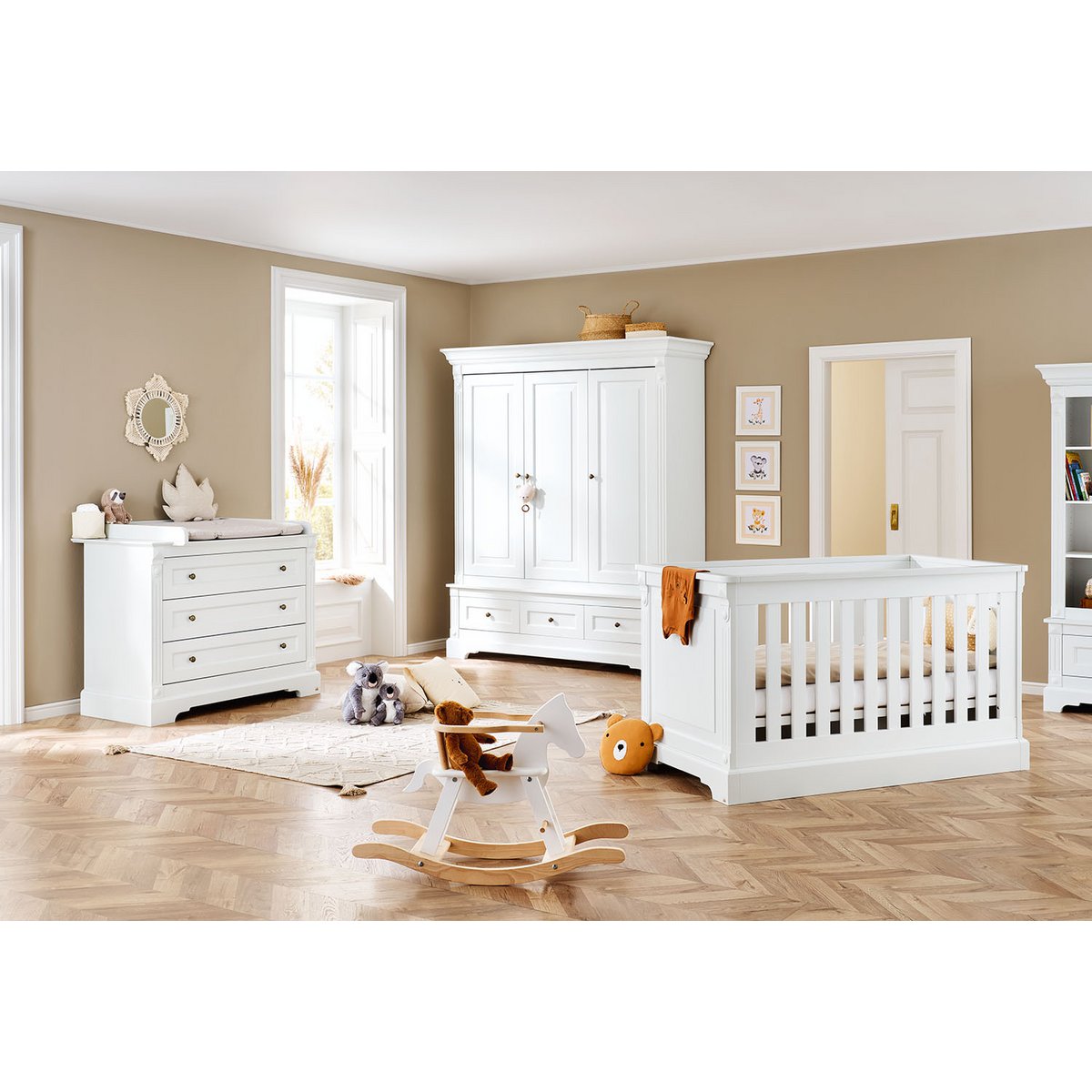 • 3-teilig mit Kinderbett, breiter Wickelkommode und großem Kleiderschrank