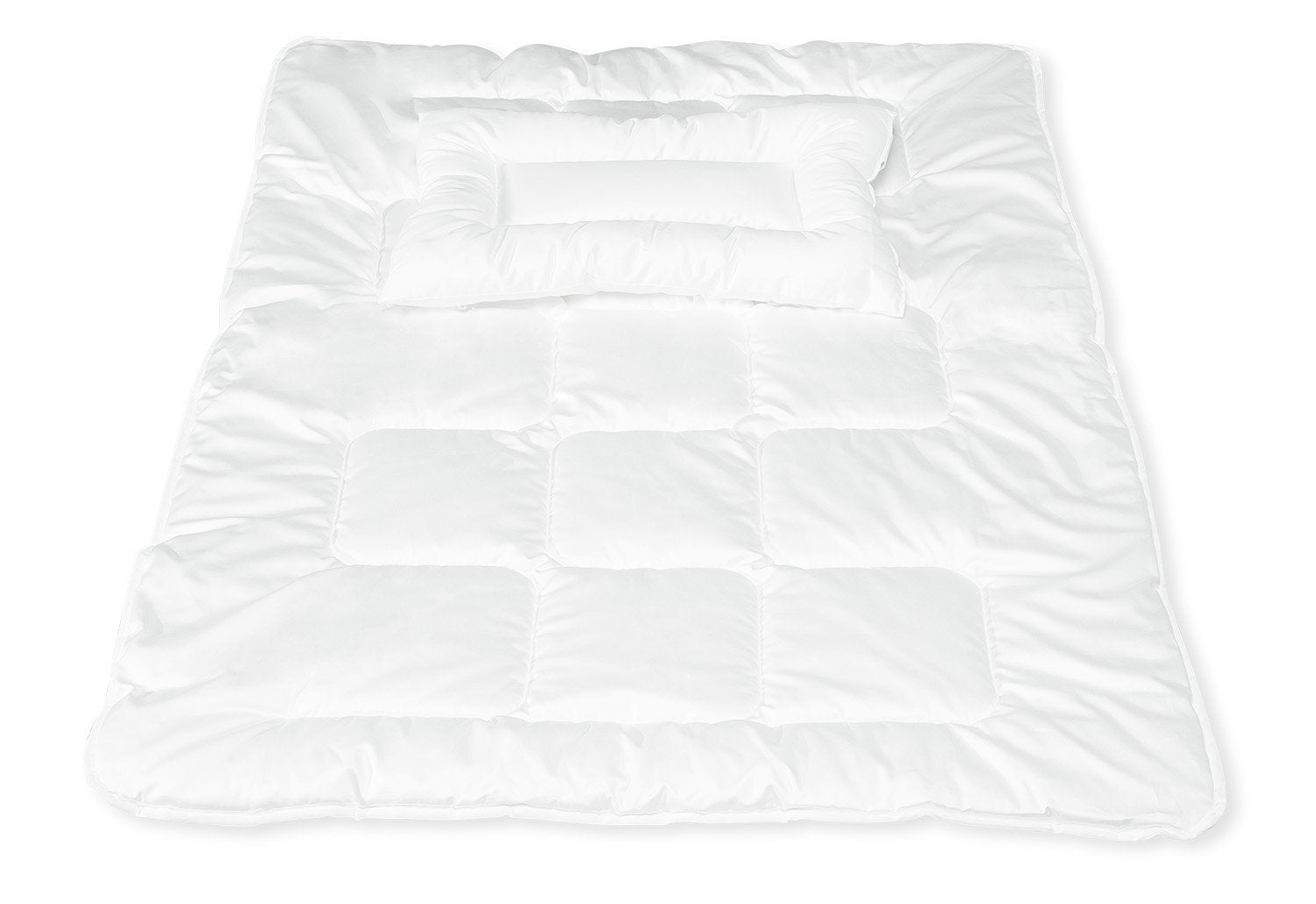 • Weiche, anschmiegsame Bettdecke mit flachem Babykissen