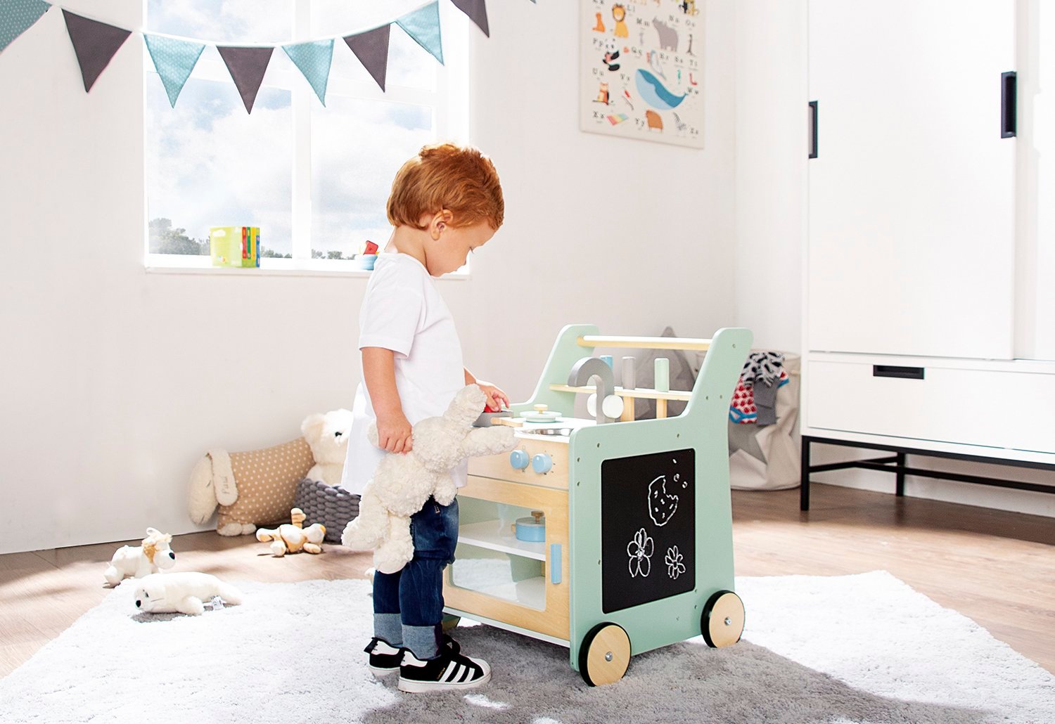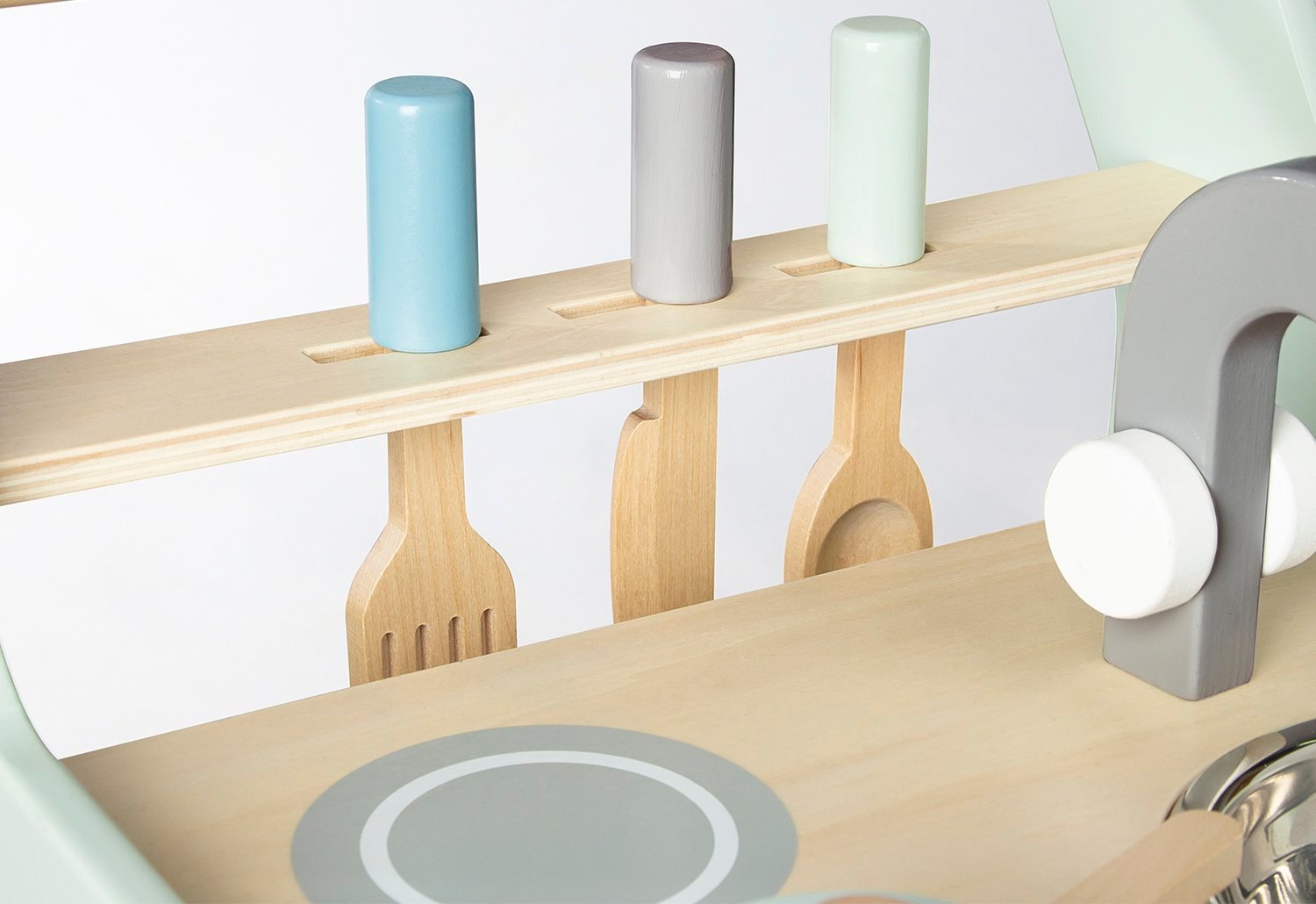 • 6 Teile: 1 Küchenwagen, 2 Töpfe, 3-teiliges Kochbesteck