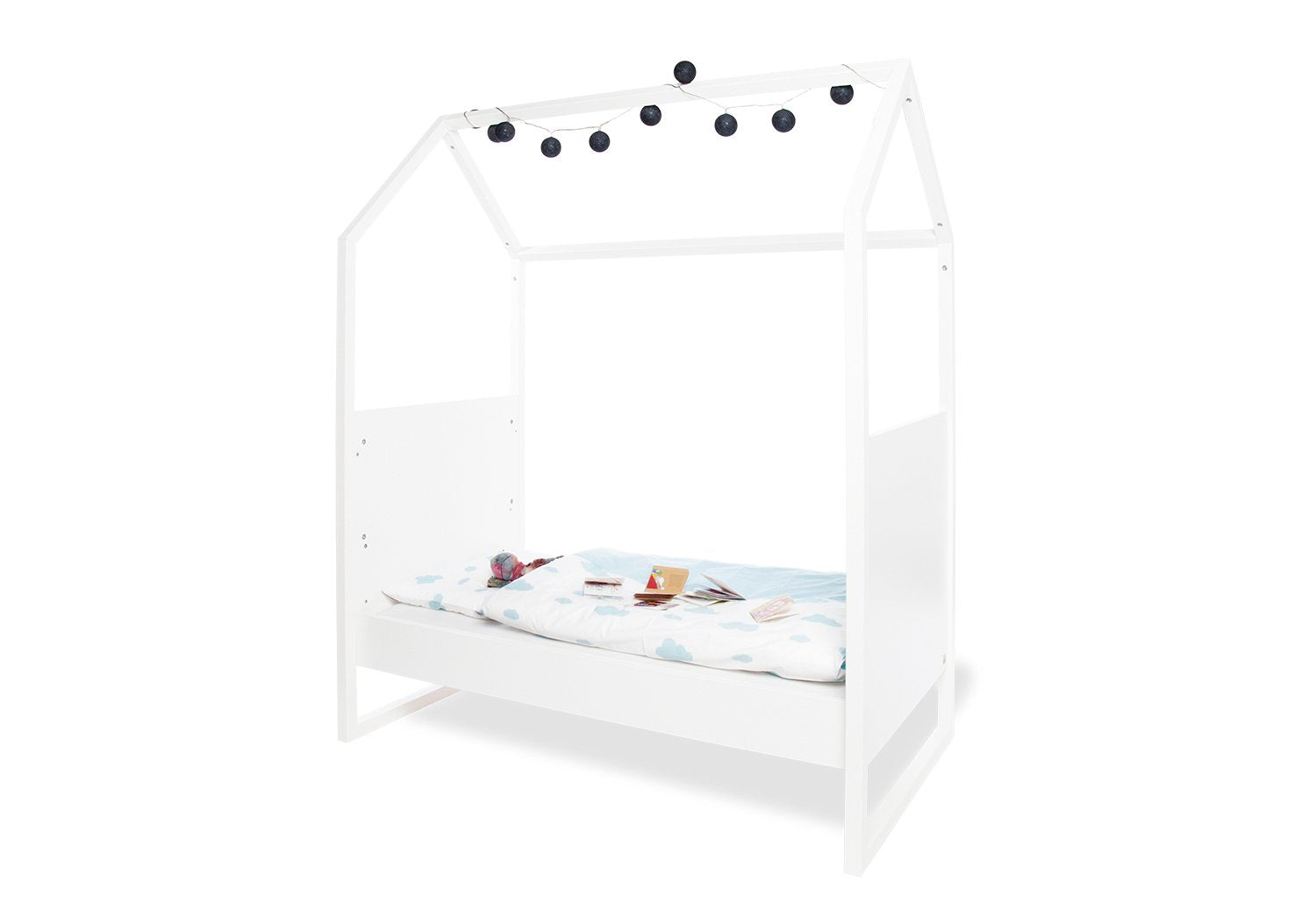 Kinderzimmer 'Hilda & Riva' breit, weiß 3-teilig: Hausbett, breite Wickelkommode, 2-türiger Kleiderschrank
