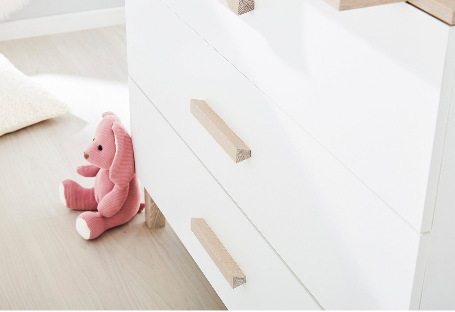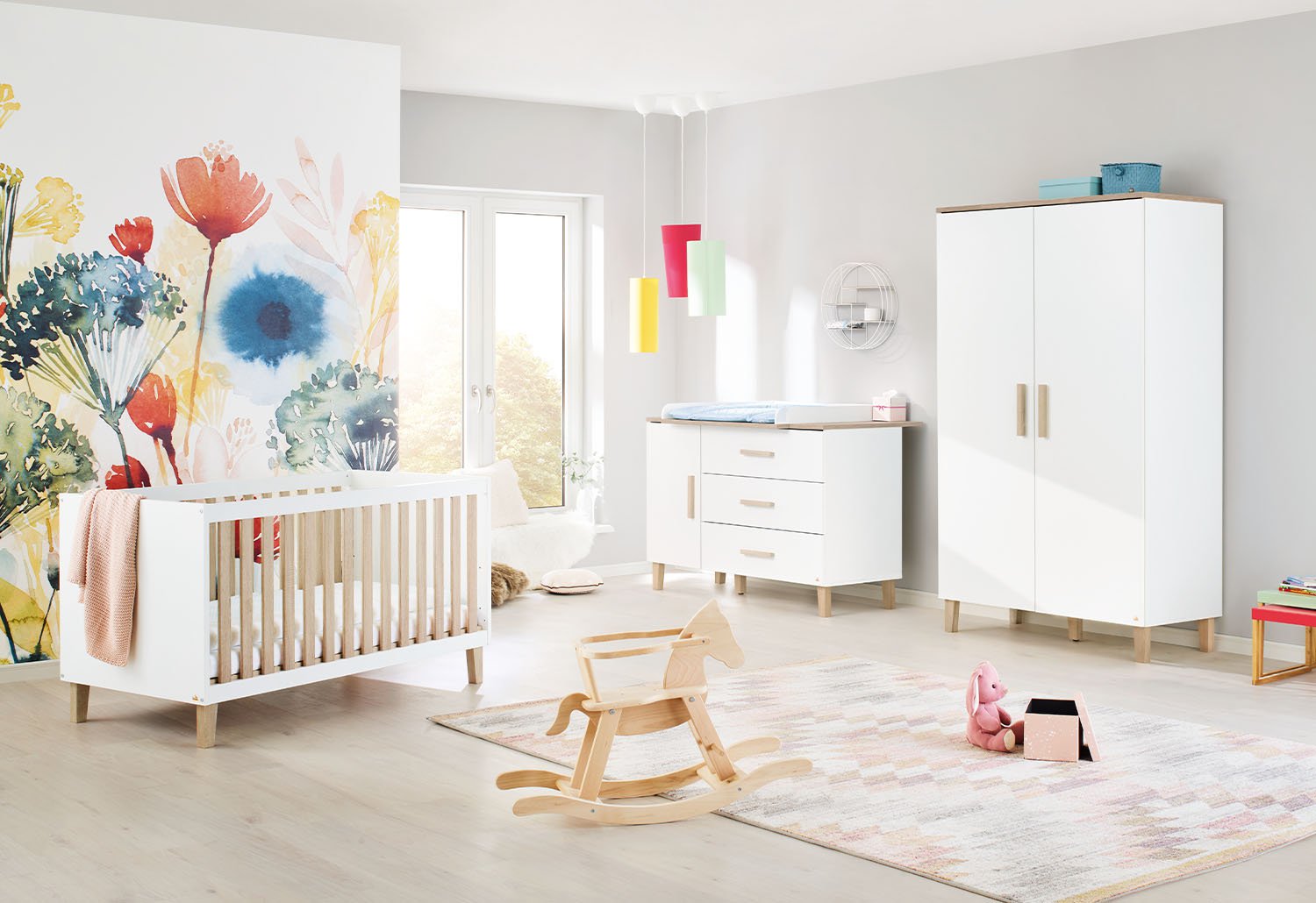 Kinderzimmer 'Lumi' extra breit 3-teilig: Kinderbett, extra breite Wickelkommode, 2-türiger Kleiderschrank