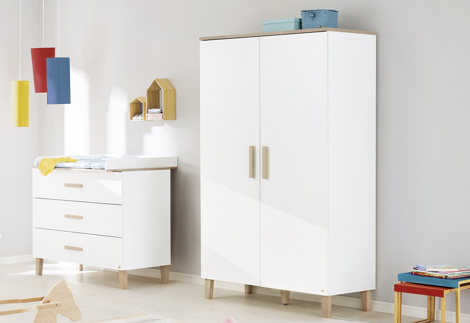 • Dekor: Uni, Weiß und Eiche mit Echtholzdekor