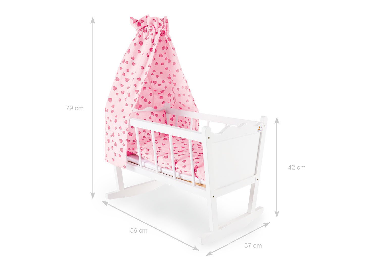 • L 56 cm, B 37 cm, H 42 cm, mit Baldachingestell 79 cm